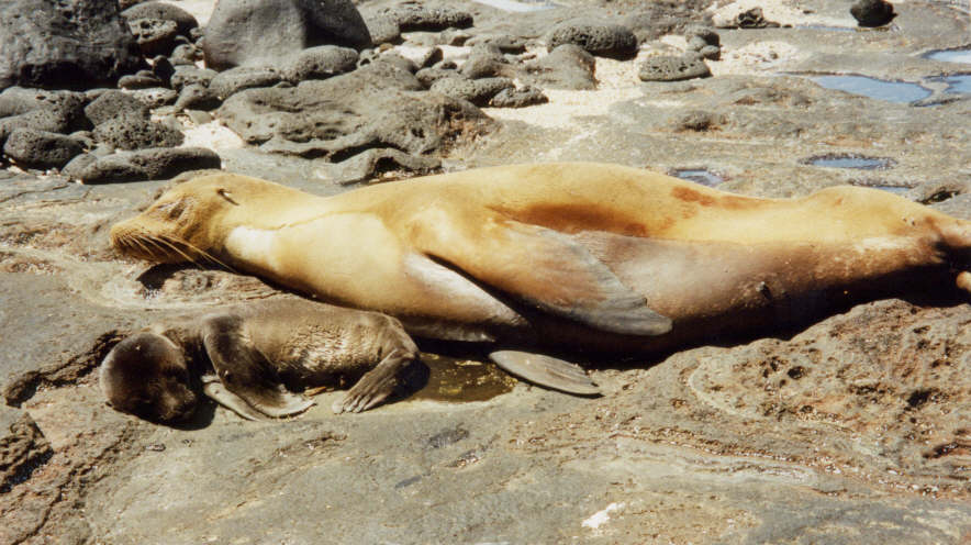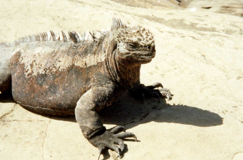 Marine iguana. Poor photo for a biologist, as the iguanas usually sun on lava from which they are almost indistinguishable, but maybe the artistic considerations excuse my seizing this opportunity.