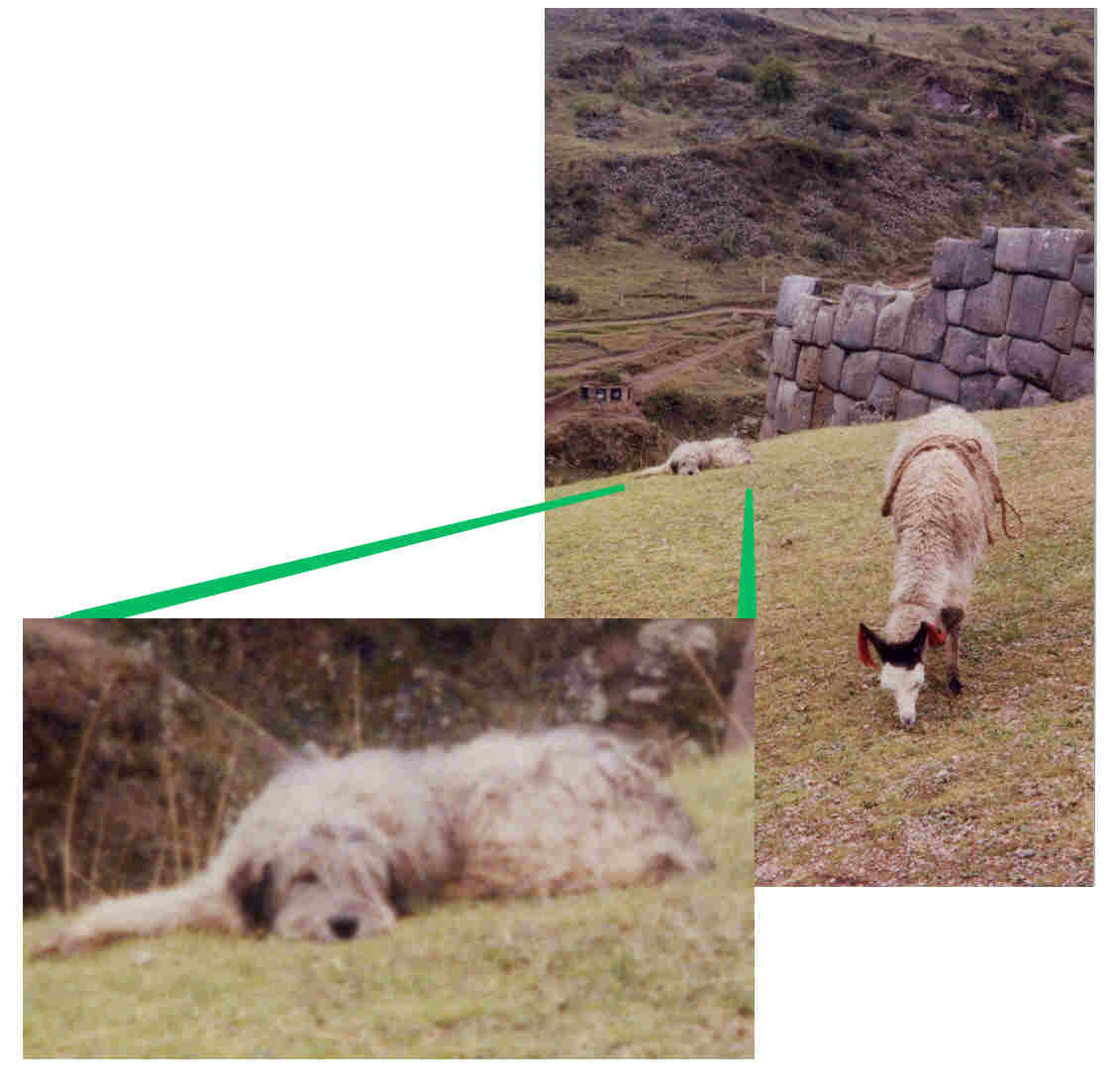 Joking aside... there are TWO basic types of shepherd. One (e.g. Border Collie) is trained by appealing to (and controlling!) the hunter in the shepherd. There IS also another approach, in which the shepherd is raised with the flock, and thinks of itself as one of the flock. This "llama" just happens to have sharp teeth!